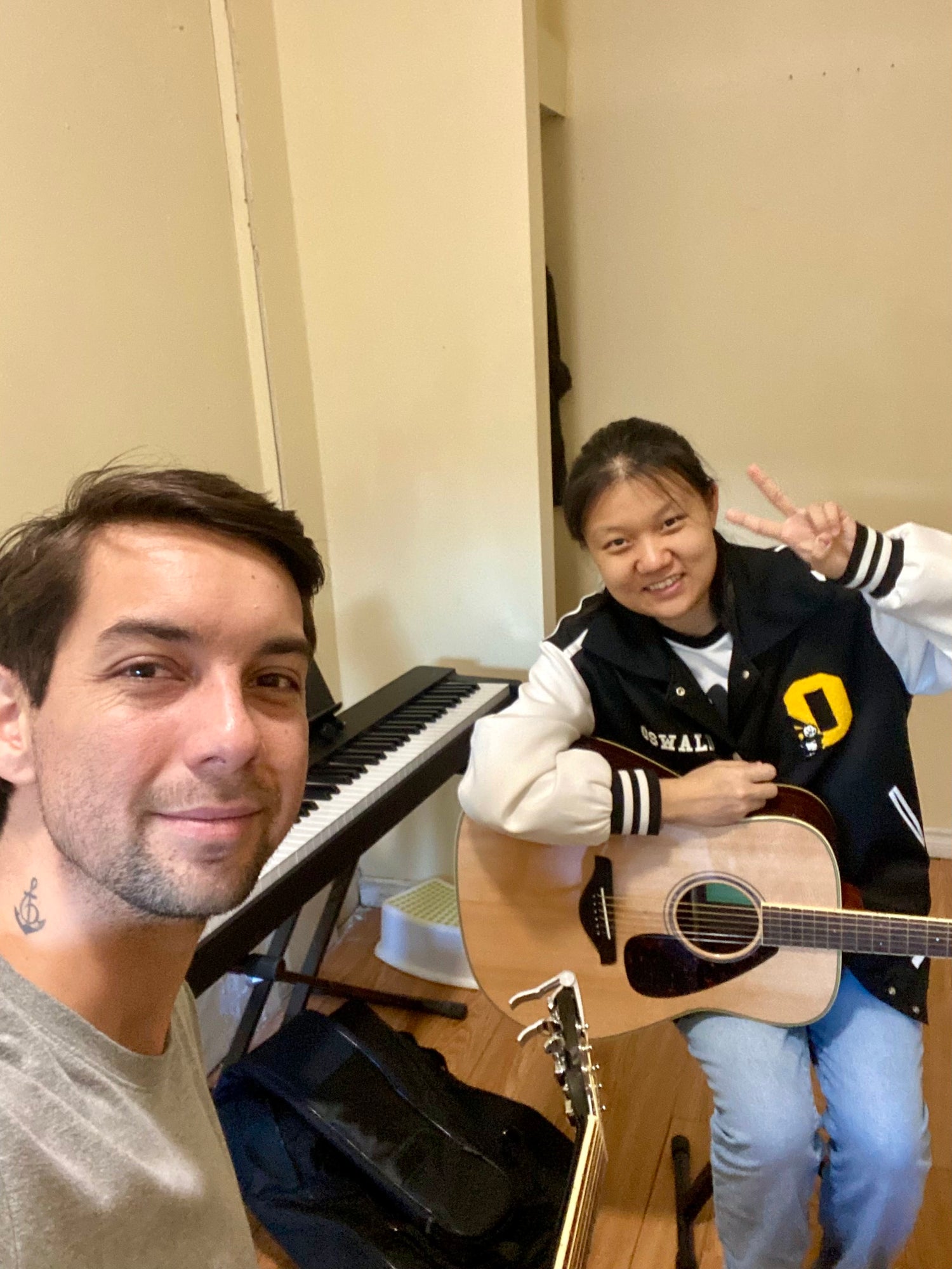 Jennifer joined with basic guitar skills, and through focused practice, she now performs challenging fingerstyle pieces like “Hallelujah” by Leonard Cohen and “Ocean” by John Butler. Her vocal technique has also grown significantly, allowing her to sing with more control and emotion. She’s now a key member of our acoustic student ensemble.